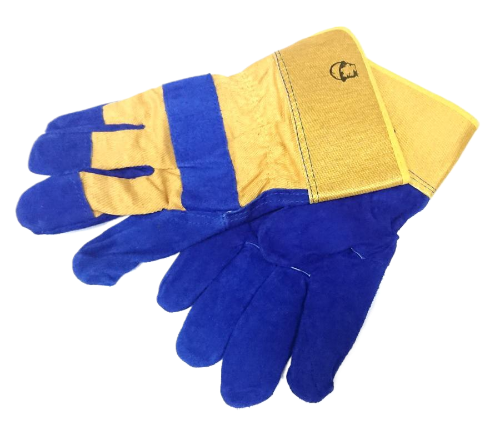 Комбинированные из качественного говяжьего спилка (толщина 1,2мм) и плотной х/б ткани (саржа). Цельнокроеная ладонь из спилка.