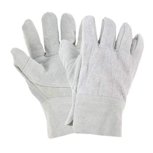 Перчатки из качественного спилка серого цвета, спилкоавая крага.